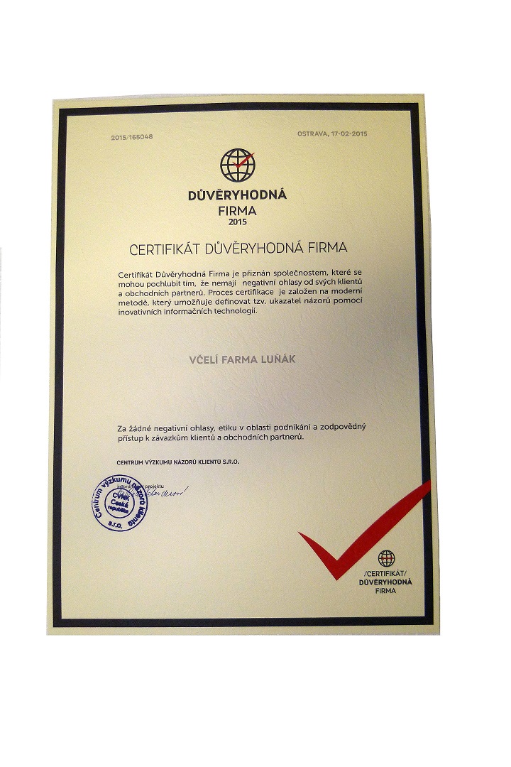 Jsme držitelé certifikátu ”Důvěryhodná firma”.